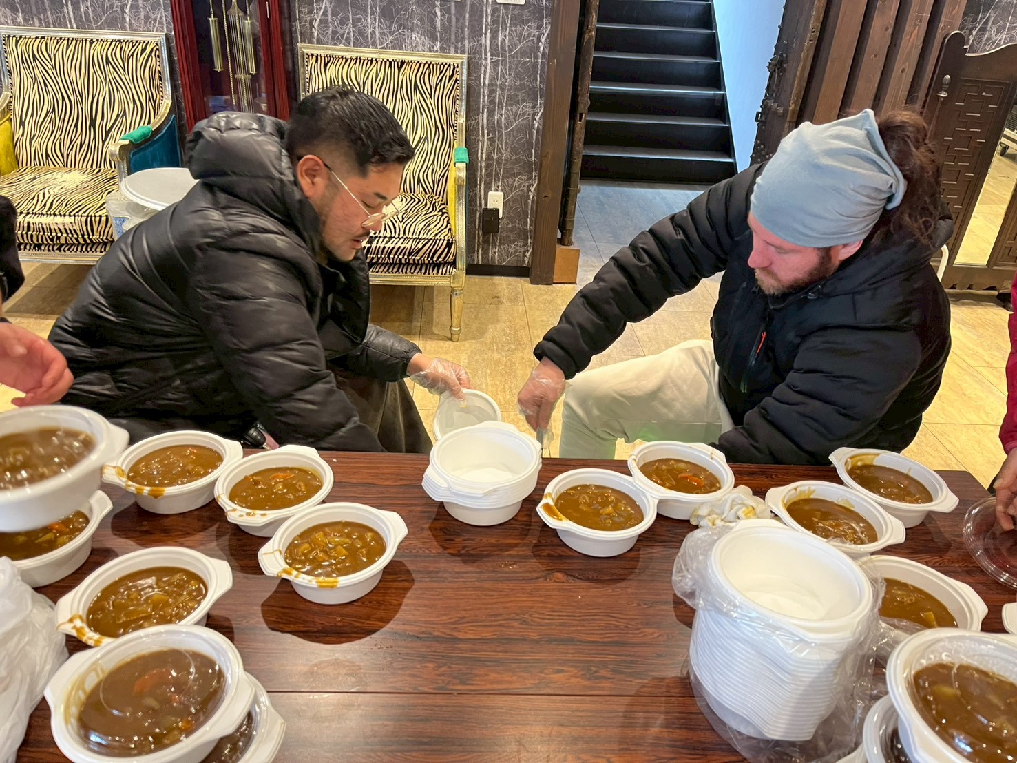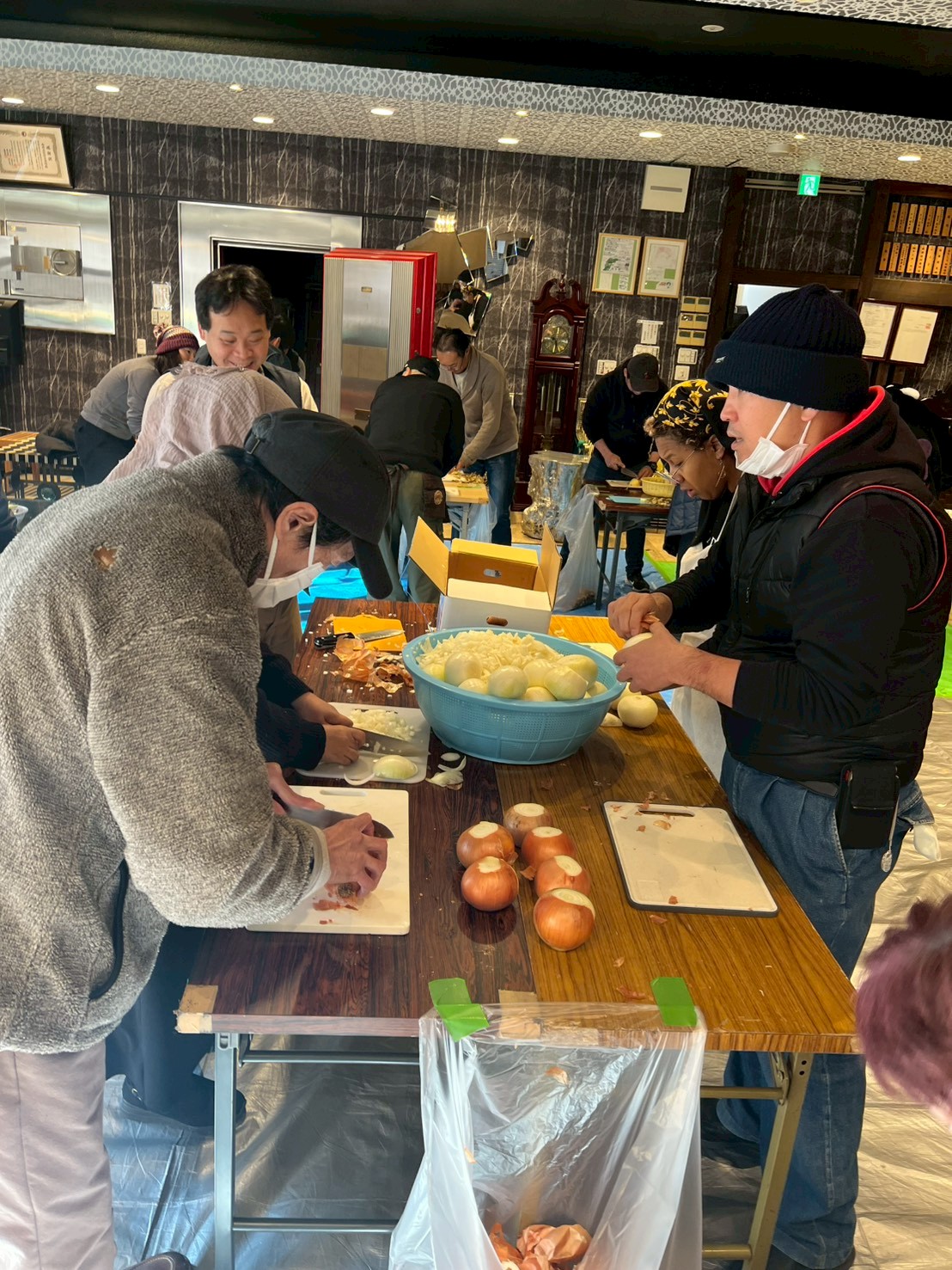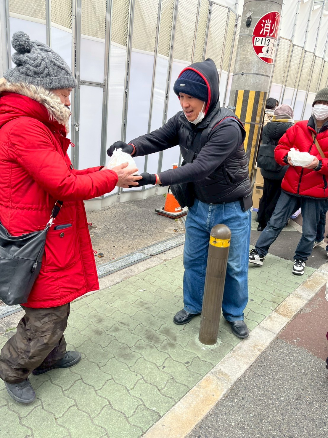 さて、今年最初の炊き出しは昨日極寒の中で開催されました。寒い中でも集まってくれたボランティアの皆さんには感謝の一言に尽きます。カレーの寸胴は外で炊くのですが、さすがに昨日は長時間外でいると寒さを感じました。終始外の寸胴を見守りつつ、冷たい水で洗いものをしくれるスタッフさんには頭が下がります。現地も寒い中だったので、あまり人は並んでいないかな・・・?と思ったのですが、予想以上の長蛇の列が出来ており大変驚きました。寒い中でも志絆会のカレーを食べに来てくれるのは嬉しい限りです。